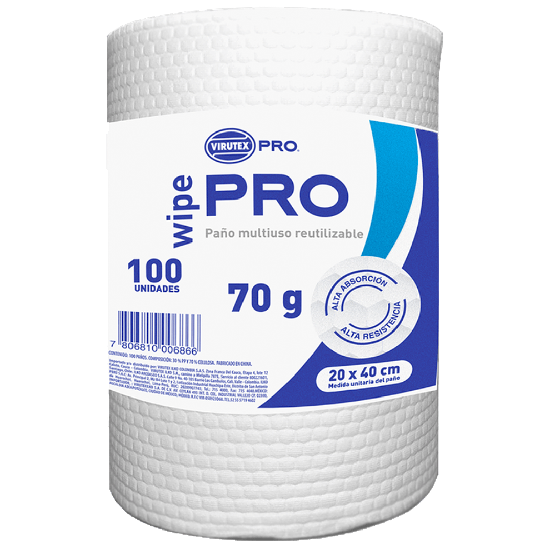 Paño multiuso reutilizable, tiene un gran poder de resistencia y absorción, su tamaño ideal para el uso diario, tiene alta durabilidad y es fácil de almacenar. Cada rollo contiene 100 unidades de paños que miden 20x40cms, tamaño ideal para 4 caras de limpieza. Viene con prepicado. 70% celulosa y 30% polipropileno. Ideal para limpieza de mesones, muebles y superficies en general en cocinas, restaurantes, clínicas y hospitales. Ideal para evitar la contaminación cruzada, dado que es desechable luego de un par de usos. Capaz de trabajar con derrames de aceites y de grasas. Reemplaza trapos y paños convencionales.